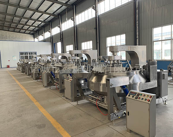 ◎本設備有四頭攪拌、五頭攪拌和七頭攪拌,根據炒鍋容積和物料性質來決定攪拌頭的數(shù)量。無需人工翻炒,鍋體液壓傾斜高位自動出料,