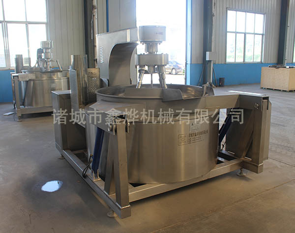 本設(shè)備有四頭攪拌、五頭攪拌和七頭攪拌,根據(jù)炒鍋容積和物料性質(zhì)來決定攪拌頭的數(shù)量。無需人工翻炒,鍋體液壓傾斜高位自動出料,設(shè)備有專門的進料料斗,可以裝配乳化器。