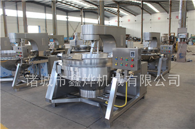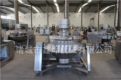 本設(shè)備有四頭攪拌、五頭攪拌和七頭攪拌,根據(jù)炒鍋容積和物料性質(zhì)來決定攪拌頭的數(shù)量。無需人工翻炒,鍋體液壓傾斜高位自動(dòng)出料,設(shè)備有專門的進(jìn)料料斗,可以裝配乳化器。