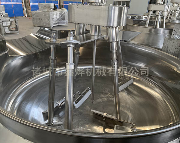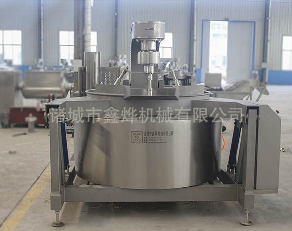 本設(shè)備有四頭攪拌、五頭攪拌和七頭攪拌,根據(jù)炒鍋容積和物料性質(zhì)來決定攪拌頭的數(shù)量。無需人工翻炒,鍋體液壓傾斜高位自動(dòng)出料,設(shè)備有專門的進(jìn)料料斗,可以裝配乳化器。